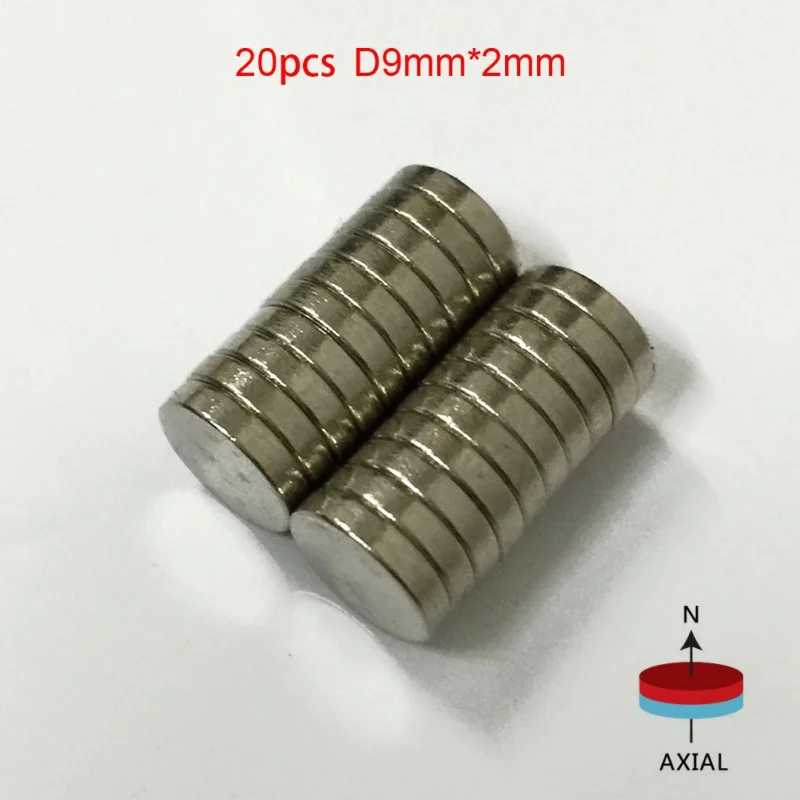 20 шт./упак. 9x2 мм Сильный редкоземельных Неодимовый магнит Неодимовый N50 магнитных материалов