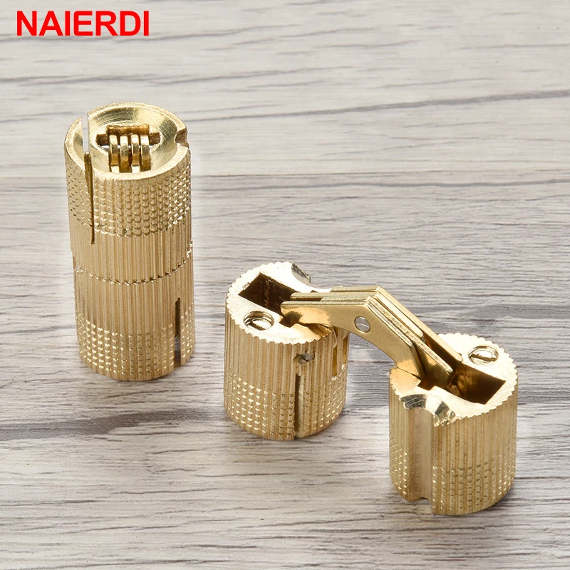 2 шт. NAIERDI 8-14 мм скрытые медные петли для шкафа невидимая дверь латунный скрытый Петля-бочонок для подарочной коробки мебельная фурнитура