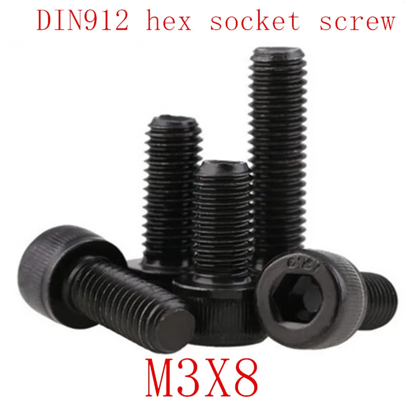 50 шт. DIN912 класс 12,9 Шестигранная головка винты со шляпкой винт с шестигранной головкой M3 * 8 m3x8