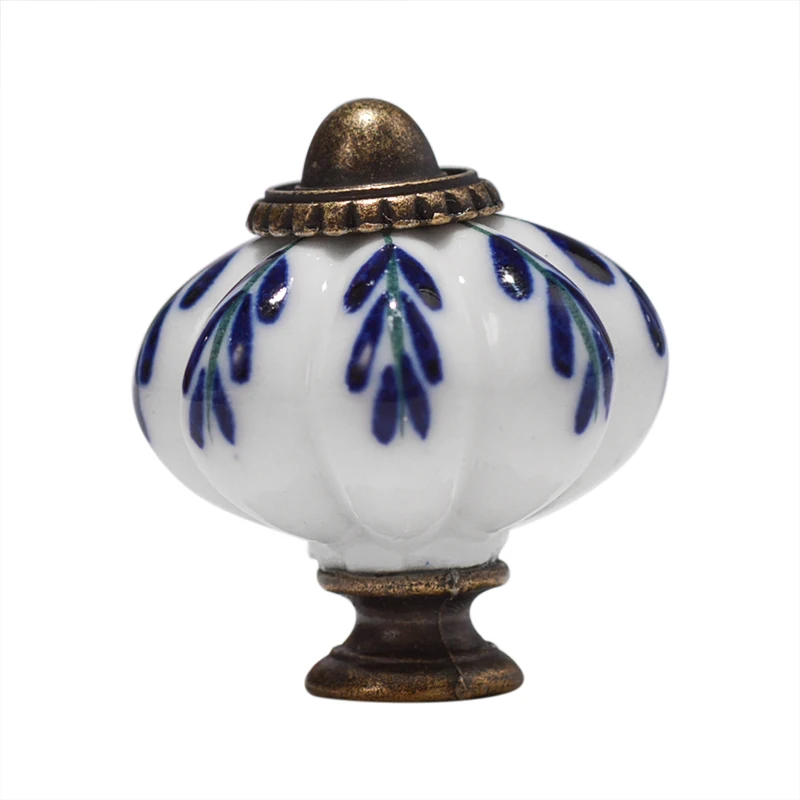 34 мм синий лист ручная роспись керамика Тыква спальня шкаф ручки двери ящика Мебель Ручки Тянет