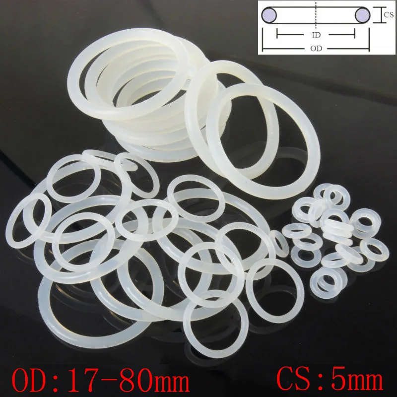 Белый Силиконовые для хранения пищевых продуктов резиновое уплотнительное кольцо уплотнительная прокладка поперечное сечение 5 мм OD 17-80 мм