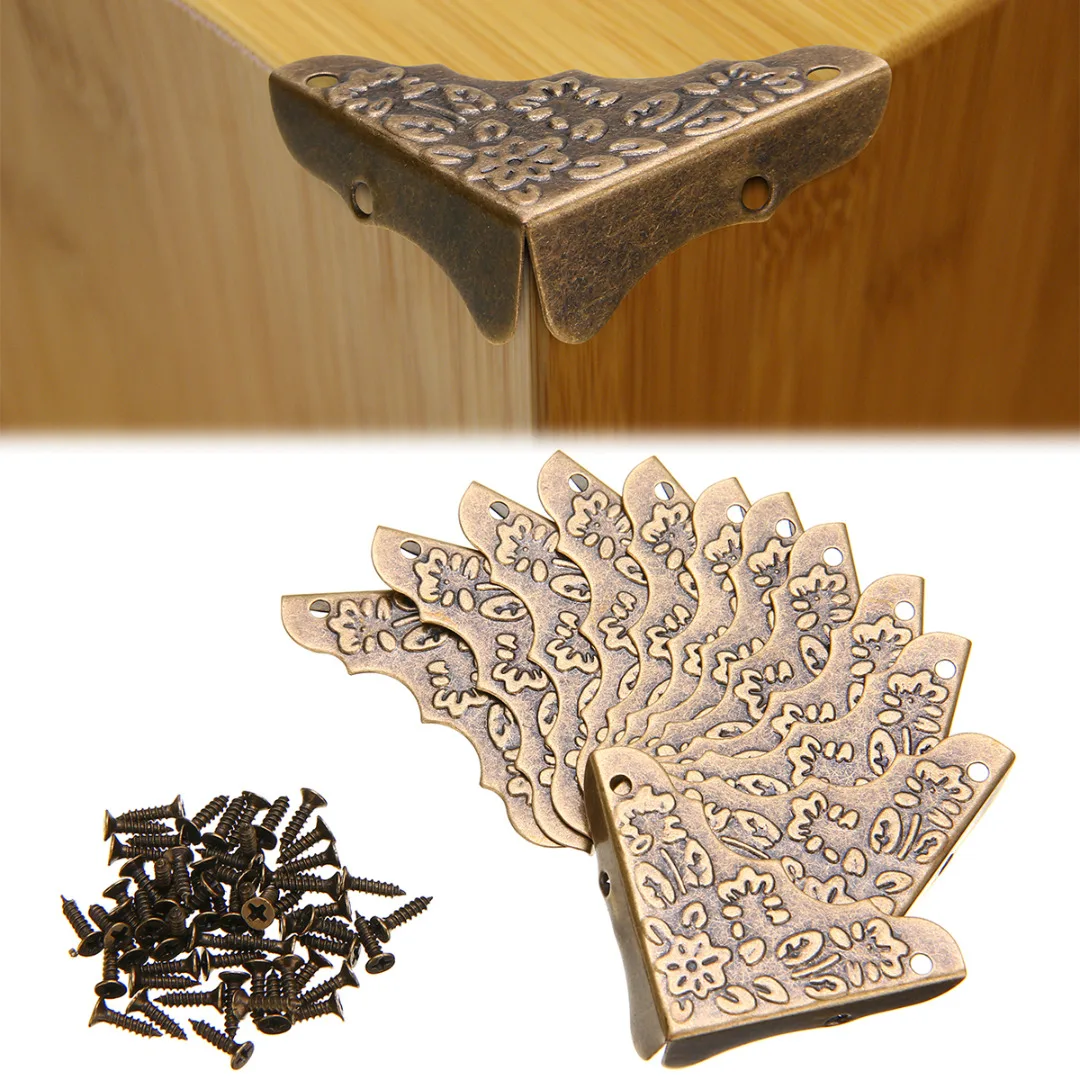 12 шт., антикварная угловая ножка для ювелирных изделий, Деревянный чехол, угловая коробка, рамка для ног, декоративный протектор, угловые кронштейны для мебельной фурнитуры