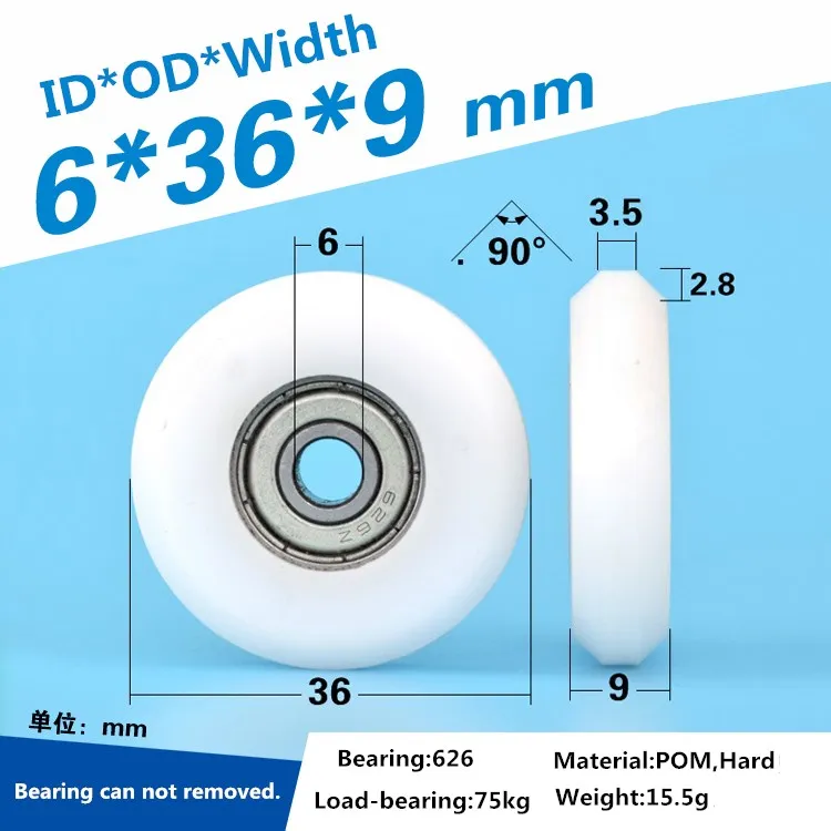 5 шт. с пластиковым покрытием подшипник шкив 626ZZ колесо качения 3D принтер еврокод 2020 трек алюминиевый профиль направляющее колесо 6*36*9