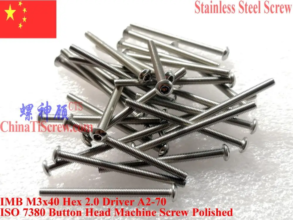 Винты из нержавеющей стали M3x40 головка кнопки ISO 7380 шестигранный драйвер A2-70 полированный ROHS 100 шт