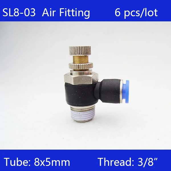 Бесплатная доставка 6 шт. 8 мм Push In для подключения установки 3/8 "Нитки скорость потока контроллер воздушный клапан SL8-03
