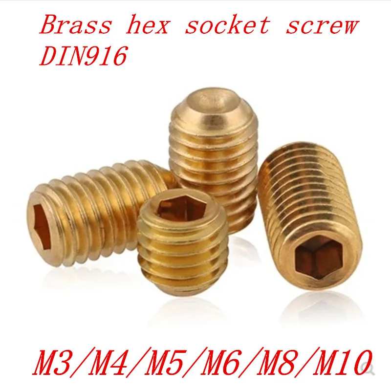 10 шт. DIN916 M3 M4 M5 M6 M8 латунь заточкой Grub Шестигранная набор шурупов