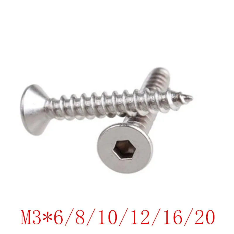 50 шт./лот M3 * 6/8/10/12/16/20 Нержавеющая сталь 304 шестигранное гнездо Телевизор с потайной головкой саморез