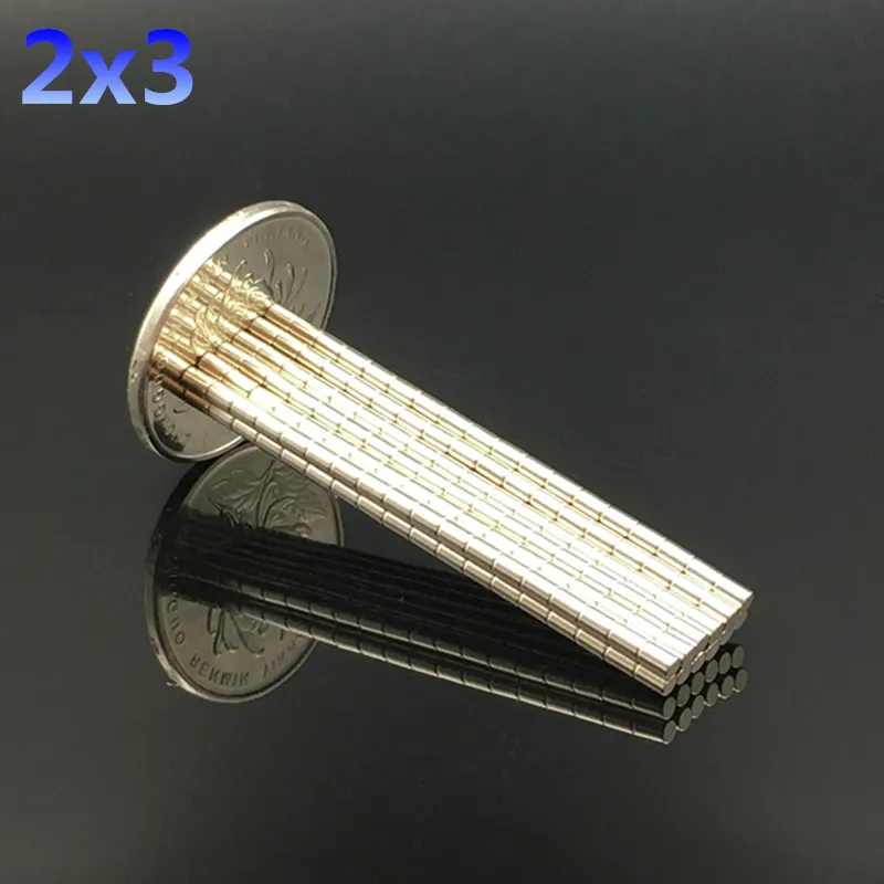 100 шт. неодимовым магнитом 2x3 редкоземельных Небольшие крепкие круглые постоянные 2*3 мм холодильник Электромагнит NdFeB никель Магнитная диск