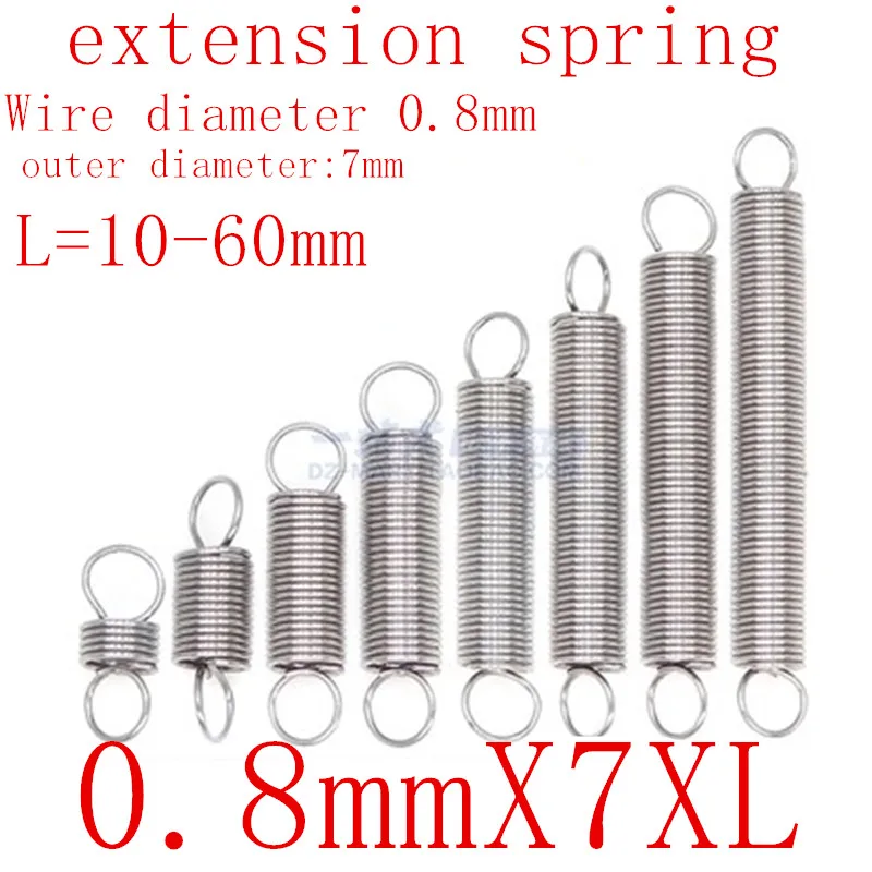 10 шт. проволока диаметром 0,8 мм 304 Нержавеющая сталь двойной крюк маленькая Натяжная пружина аксессуары наружный диаметр 7 мм длина 20-50 мм