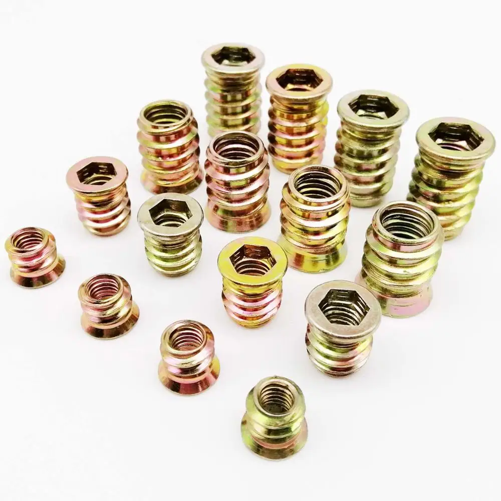 5/10/20 высокое качество M6 M8 M10 углерода Сталь шестигранные винты с шестигранной головкой привода Деревянная мебель встроенный Вставка Гайка E-гайка с метрической резьбой