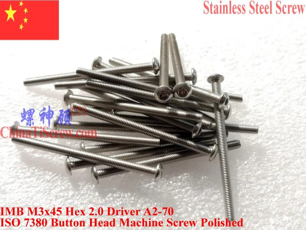 Винты из нержавеющей стали M3x45 головка кнопки ISO 7380 шестигранный драйвер A2-70 полированный ROHS 100 шт