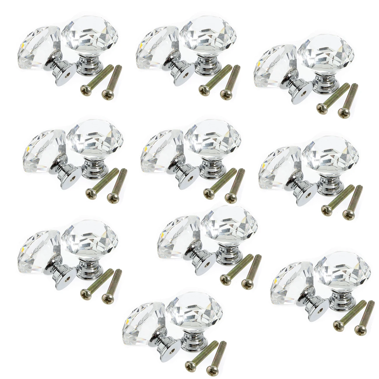 THGS 10 шт 30 мм Алмазный кристалл вытяжной ящик со стеклянной дверью Мебельная ручка с резьбой