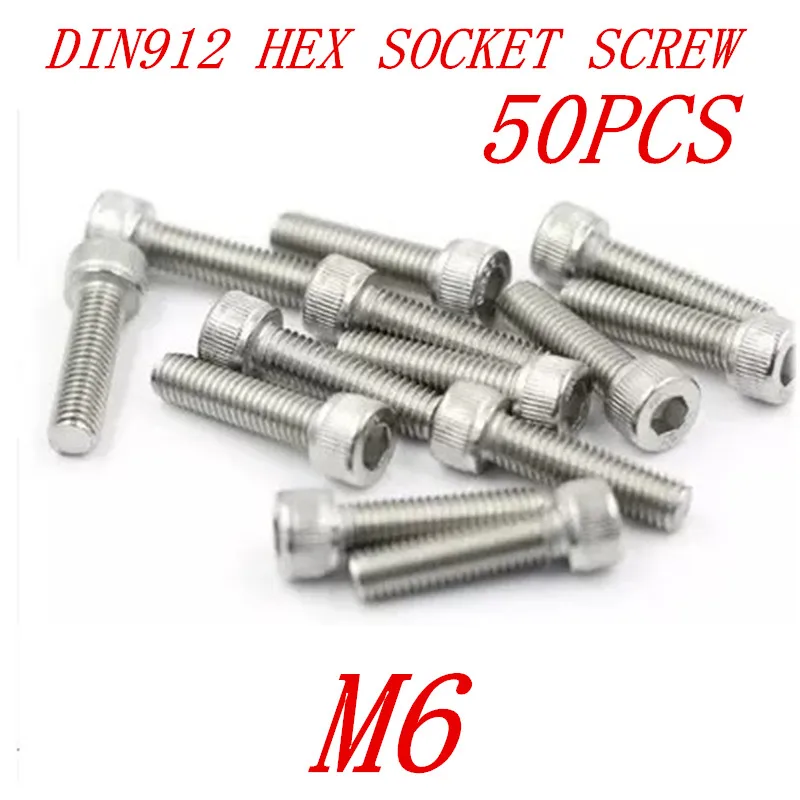 50 шт. M6 * 8/10/12/14/16/18/20/25/ 30/35/40/45/50 DIN912 304 Нержавеющая сталь с шестигранной головкой Кепки винты болты с головкой под шестигранник