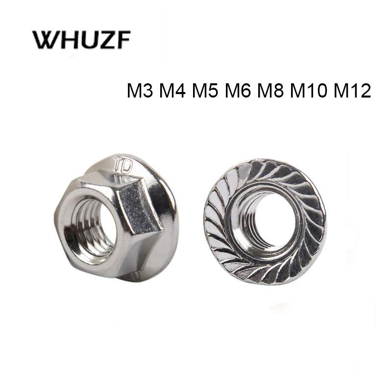 10/25/50/55 шт Шестигранная Фланцевая гайка из нержавеющей стали m3 m4 m5 m6 m8 m10 m12 201S 304S Фланцевая гайка из нержавеющей стали DIN6923
