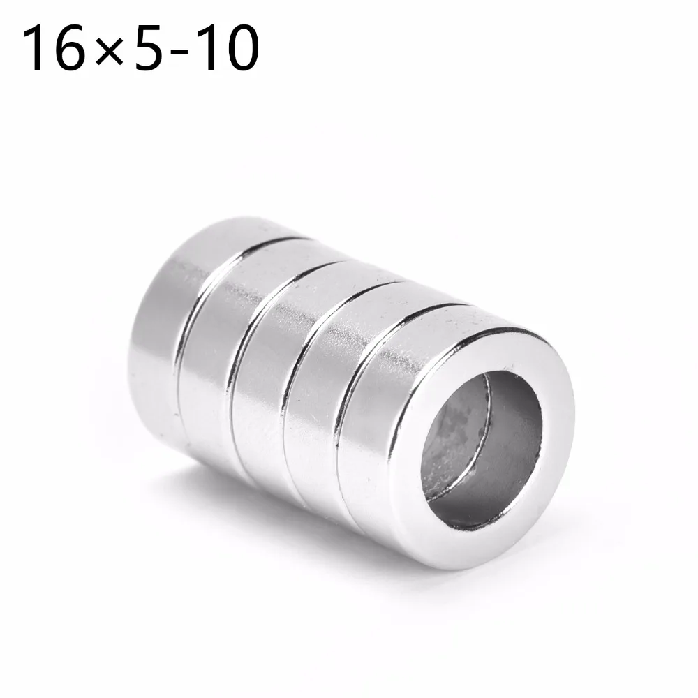 10 шт. 16x5 мм отверстия 10 мм N35 супер сильный постоянный круглый неодимовые прямо отверстие Кольцо Магнит Редкие редкоземельных магнитов 16*5-10