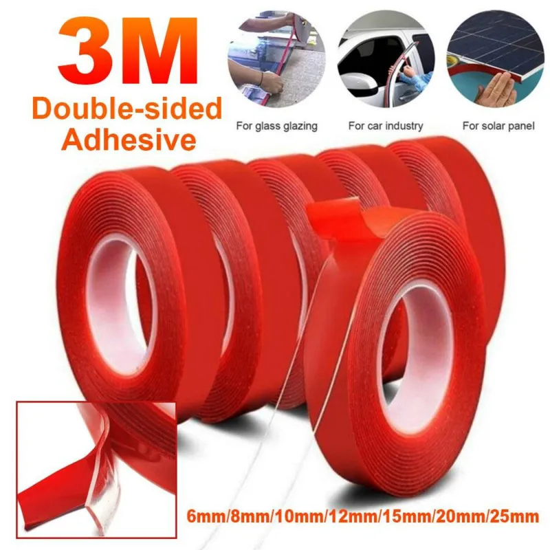 Акриловая Двухсторонняя лента 12 мм для улучшения дома, прочная не маркирующая водостойкая клейкая лента, толстая клейкая лента 3 м, двусторонняя автомобильная лента