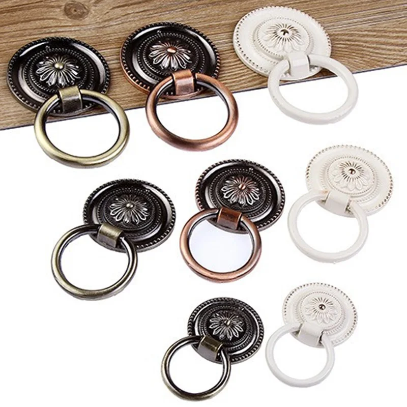 Ретро Античная шкаф из цинкового сплава ручку цветок резные ящика падения дверное кольцо двери ящик для шкафов кухонный шкаф Ванная комнат...
