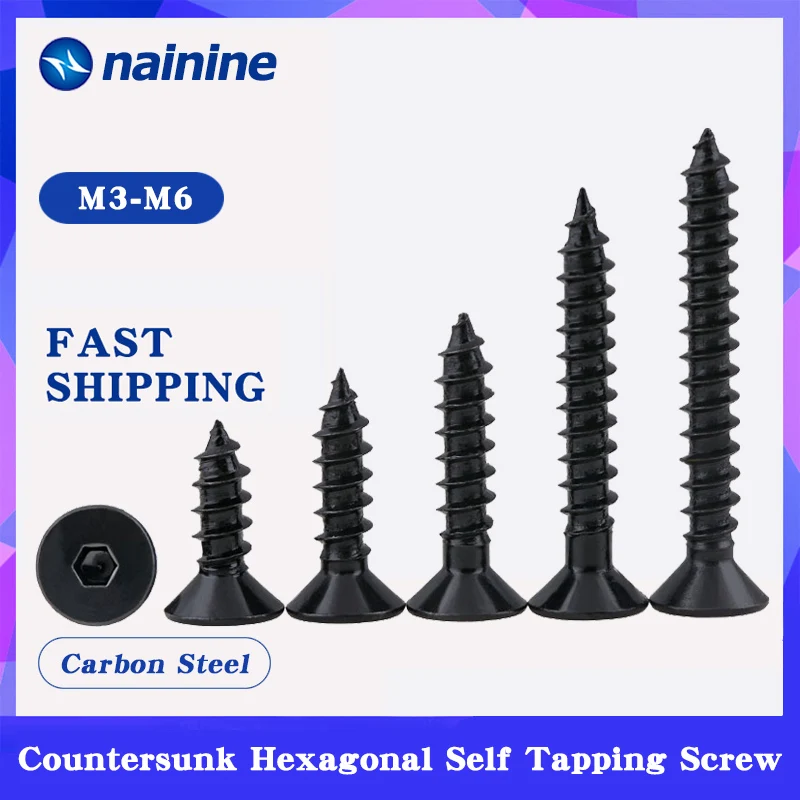 20/50Pcs M3 M4 M5 M6 Countersunk Head Hexagonal Self Tapping Screw Flat Head Screws Black 8.8 High Strength SS23