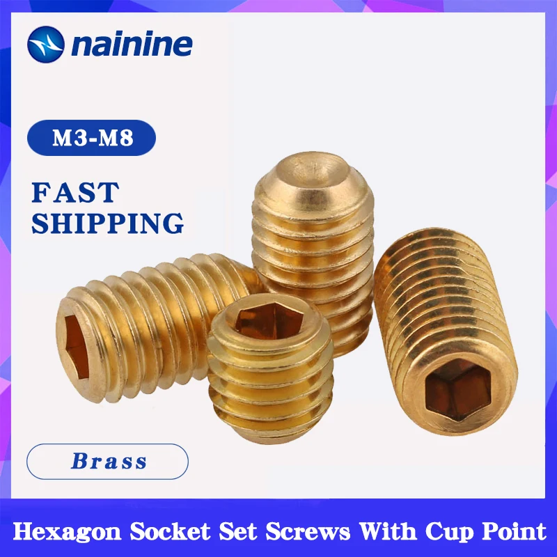20 шт M3 M4 M5 латунь заточкой Grub болты с шестигранной Установите винты латунные Аллен Шестигранная головка Srews HW279