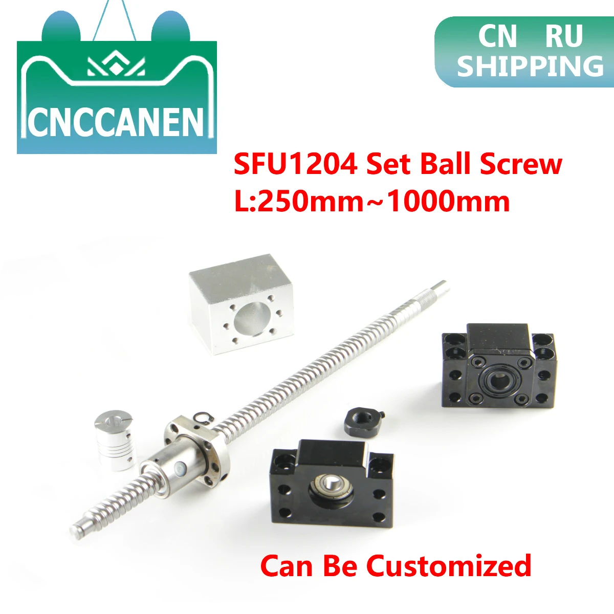SFU1204 шариковый винт С7 с торцевой обработкой 250-1500 мм + муфта RM1204 + 1 корпус шариковой гайки + 1 набор BK10/BF10 опора