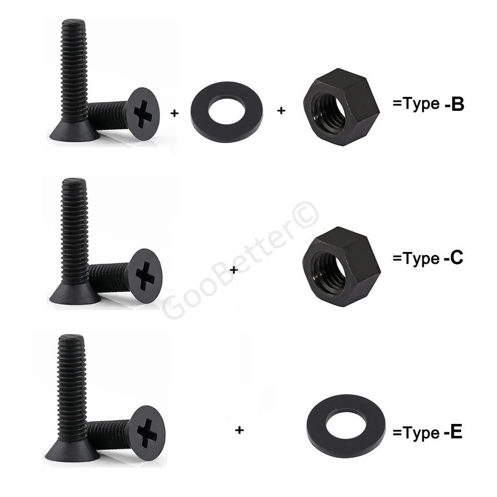 M5 черный нейлон Phillips плоский винт с потайной головкой Пластик винт + гайка + плоская шайба комплект Длина 8 мм, 10 мм, 12 мм, 15 мм, 20-30 мм