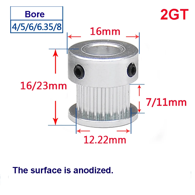 2GT 20 зуб Алюминий сплава зубчатый шкив K Тип синхронный колеса Шестерни части для Ширина 7/11 мм Внутреннее отверстие для возрастов от 4 до 8 лет...