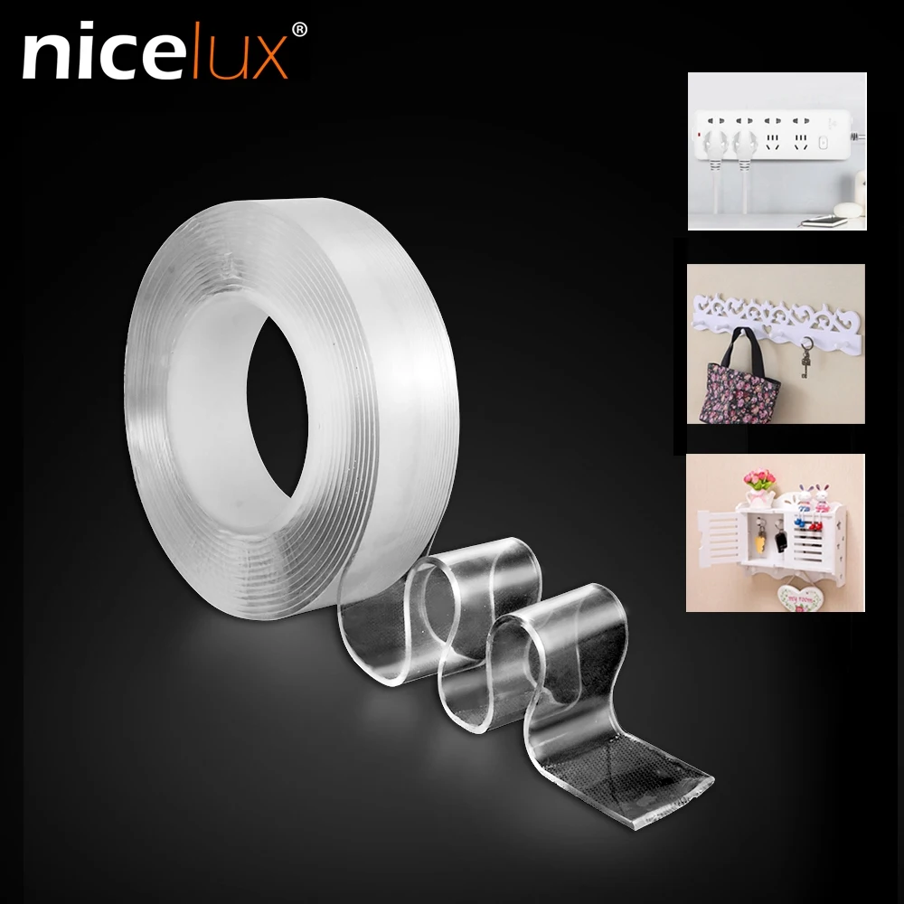 1/2/3/5m многоразовые Nano Двусторонняя лента сильная клейкая Водонепроницаемый супер Fix гель на рукоятку, Не оставляющий следов надежный дизайн...