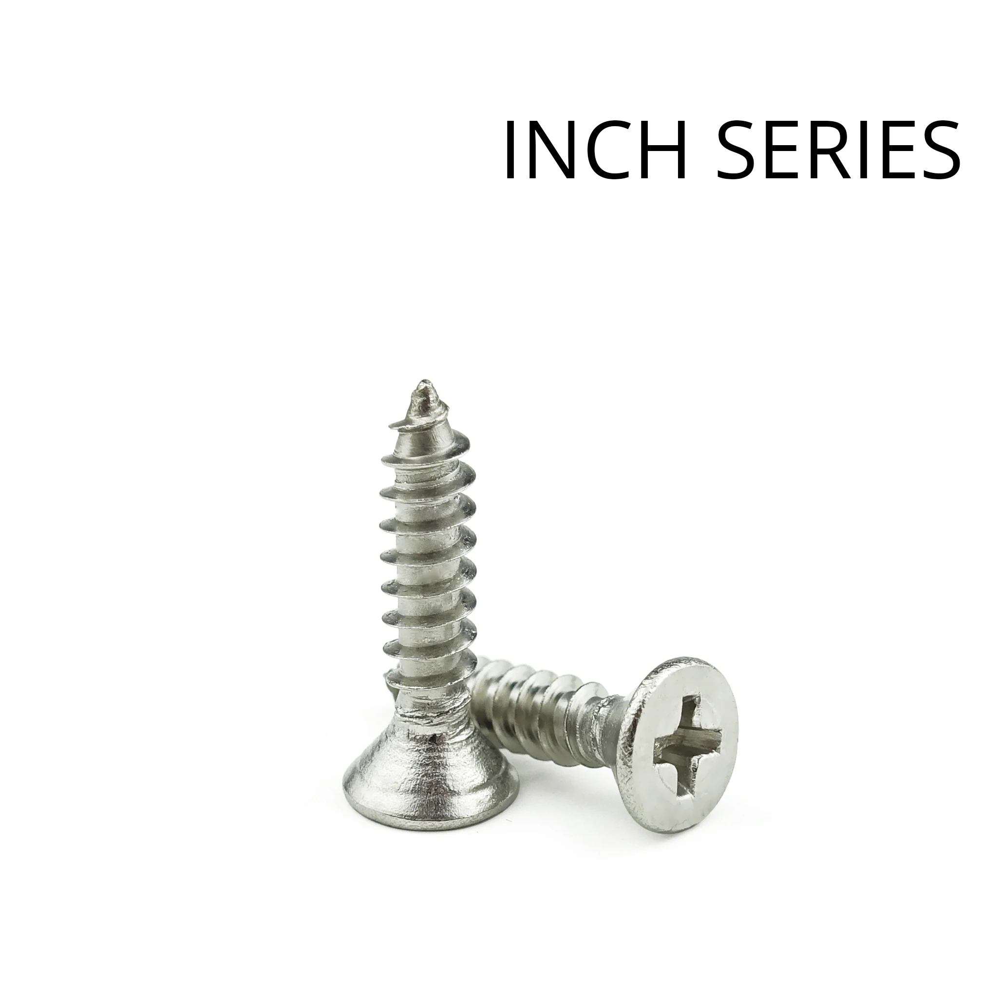 Дюймовая серия саморезов 304 нержавеющая сталь Tornillos листового металла шурупы по дереву с плоской головкой Phillips
