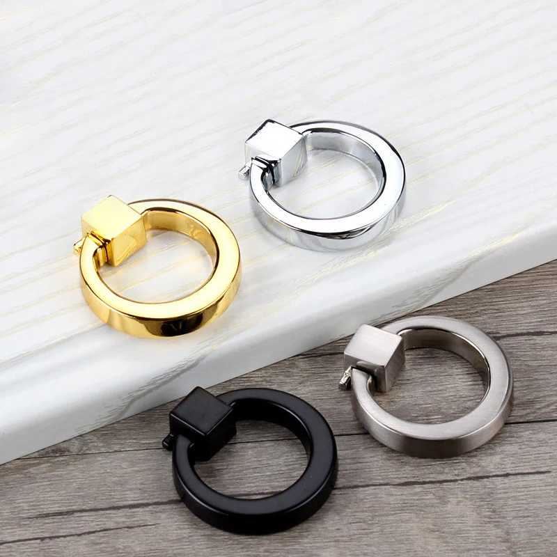 43 мм круглые ручки цвет золотой серебряный черный кольцо цинковый сплав нажимные дверные ручки ящика шкафа ручки для мебельного Оборудован...