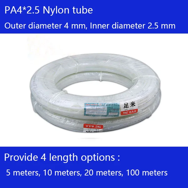Бесплатная доставка пневматические соединители высокотемпературная нейлоновая трубка pa4x2.5 мм, OD 4 мм ID 2,5 мм, длина 10 м 100 м Воздушная трубка, полиамидная трубка