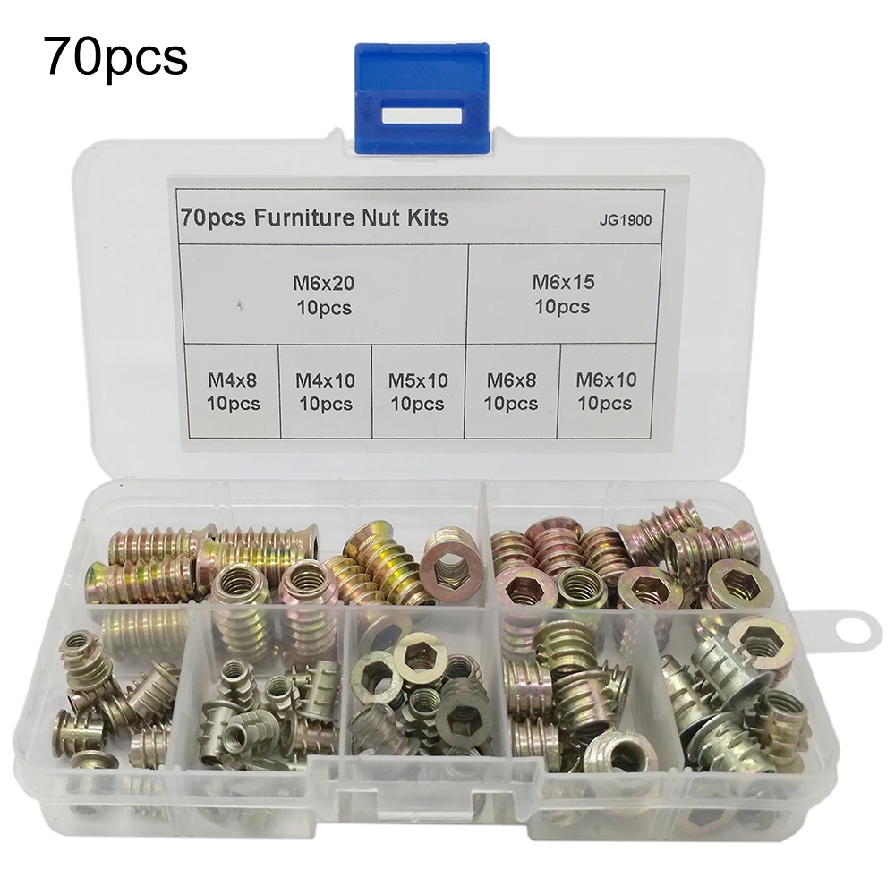 70 шт. цинковый сплав деревянная мебель Шестигранная Drive резьбовые вставки гайка ассортимент Наборы