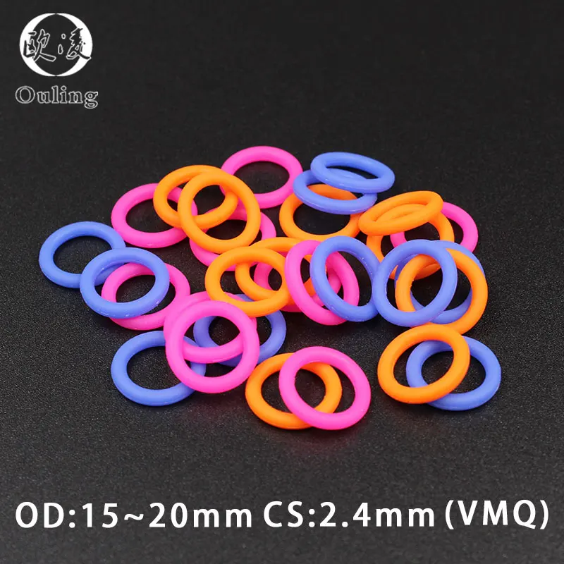 10 шт./партия разноцветные силиконовые резиновое уплотнительное кольцо из силикона/VMQ толщина 2,4 мм OD 15/16/17/18/19/20 мм резиновая прокладка уплотн...