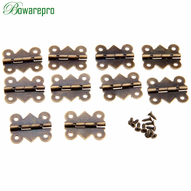 Шт. 10 шт. Античная бронзовые шарниры Мини Винтаж латунные петли для деревянной мебель хранения ювелирных изделий Подарочная коробка Петля