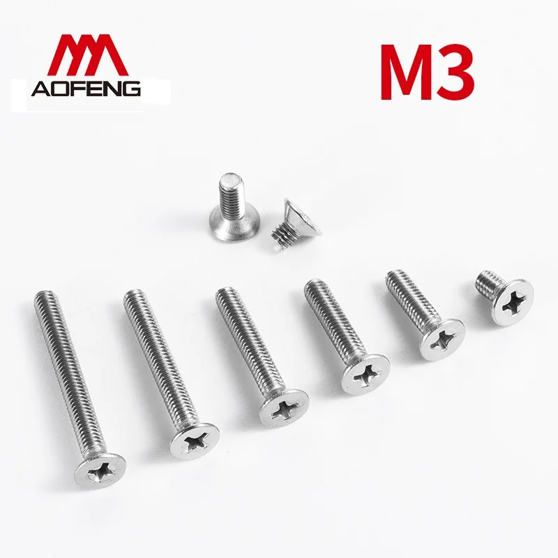 304 Stianless Сталь винт с потайной головкой и крестообразным шлицем M3x4 5 на возраст 6, 8, 10, 12 лет 14, 20, 22, 25 28 30 35, 40 45 50 мм с плоским носком Philip головка