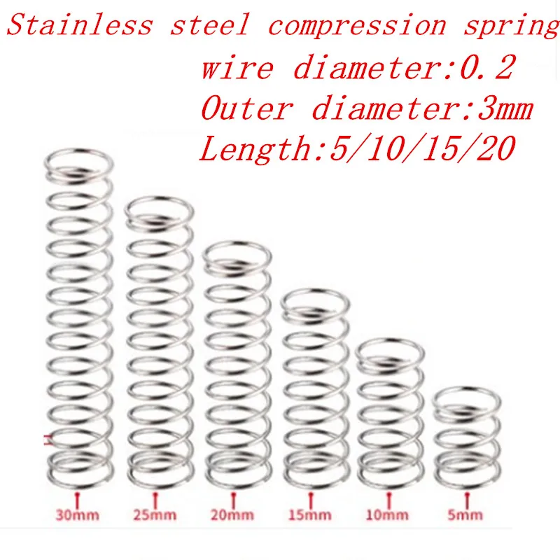 20 шт./лот 0,2*3*5/10/15/20/25/30/35/40/45/50 мм 0,2 мм из нержавеющей стали, микро маленькая Пружина сжатия OD 3 мм