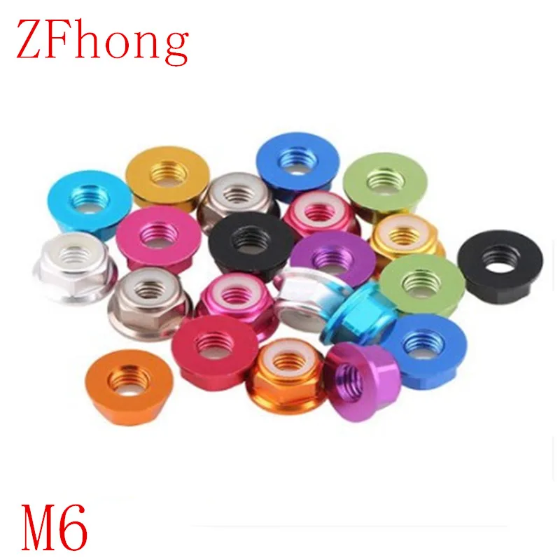 10 шт. M6 красочные Алюминий сплав фланец нейлоновые вставки Контргайка самоконтрящаяся гайка