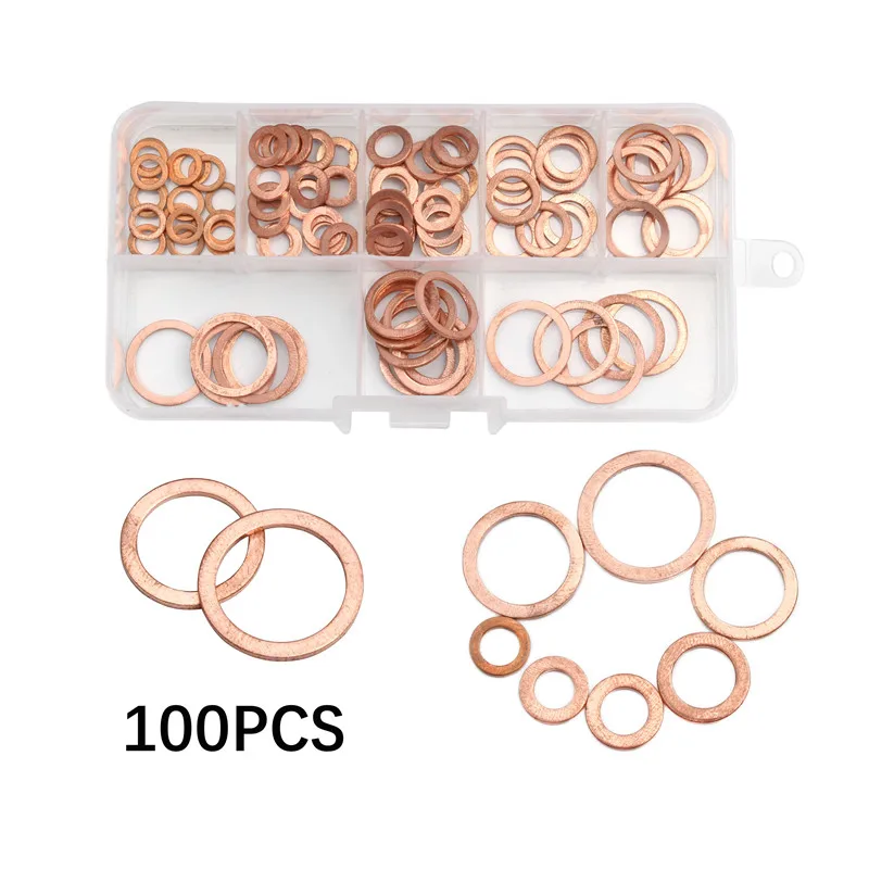 100 шт., M4-M14, профессиональный ассорти, медная шайба, заглушка, сальник, фитинги, Комплект прокладок, плоское кольцо, уплотнение, аксессуары, комплект