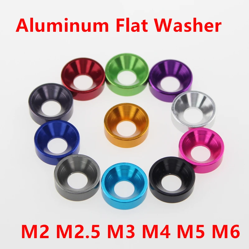 20 штук Алюминий сплава шайба M2 M2.5 M3 M4 M5 M6 Алюминий красочные потайной головкой шайбы для болтов прокладка анодированного 11 цветов