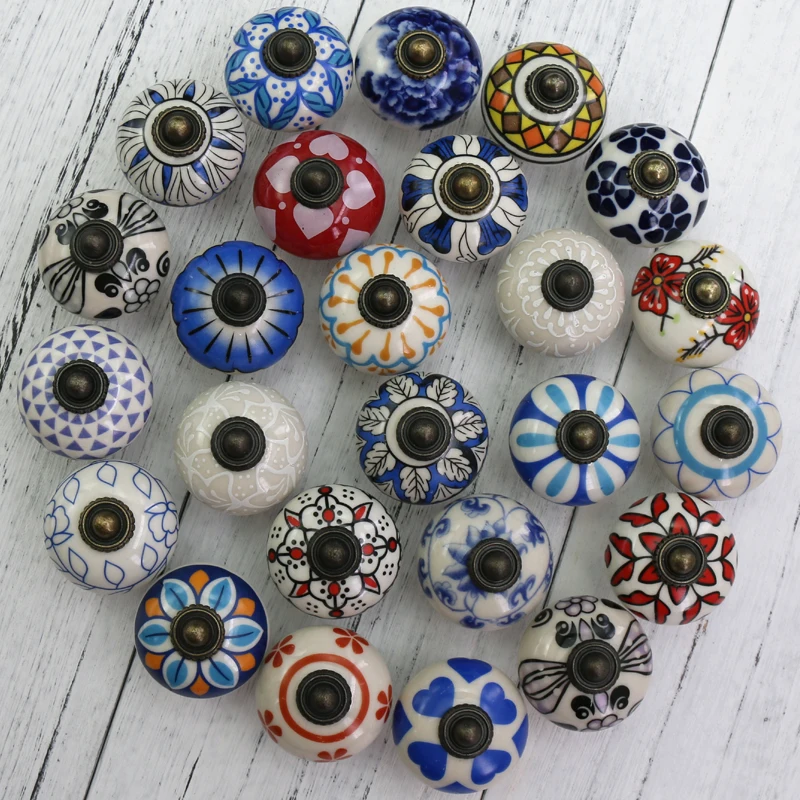 1x Винтаж цветок окрашенные керамические ручки и ручки шкаф двери ящика Кухня Тянуть мебельная фурнитура