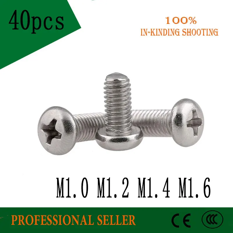 40 шт. M1/M1.2/M1.4/M1.6 * L мм Винт GB818 полукруглый 304 нержавеющая сталь плоская полушаровая головка с крестом на верхушке Крест винт