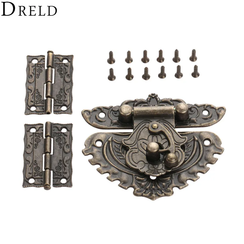 DRELD 2 шт. мебель петли для шкафа с Античная бронзовая бижутерия деревянная коробка переключения Hasp защелкивающаяся застежка Винтаж аппаратн...