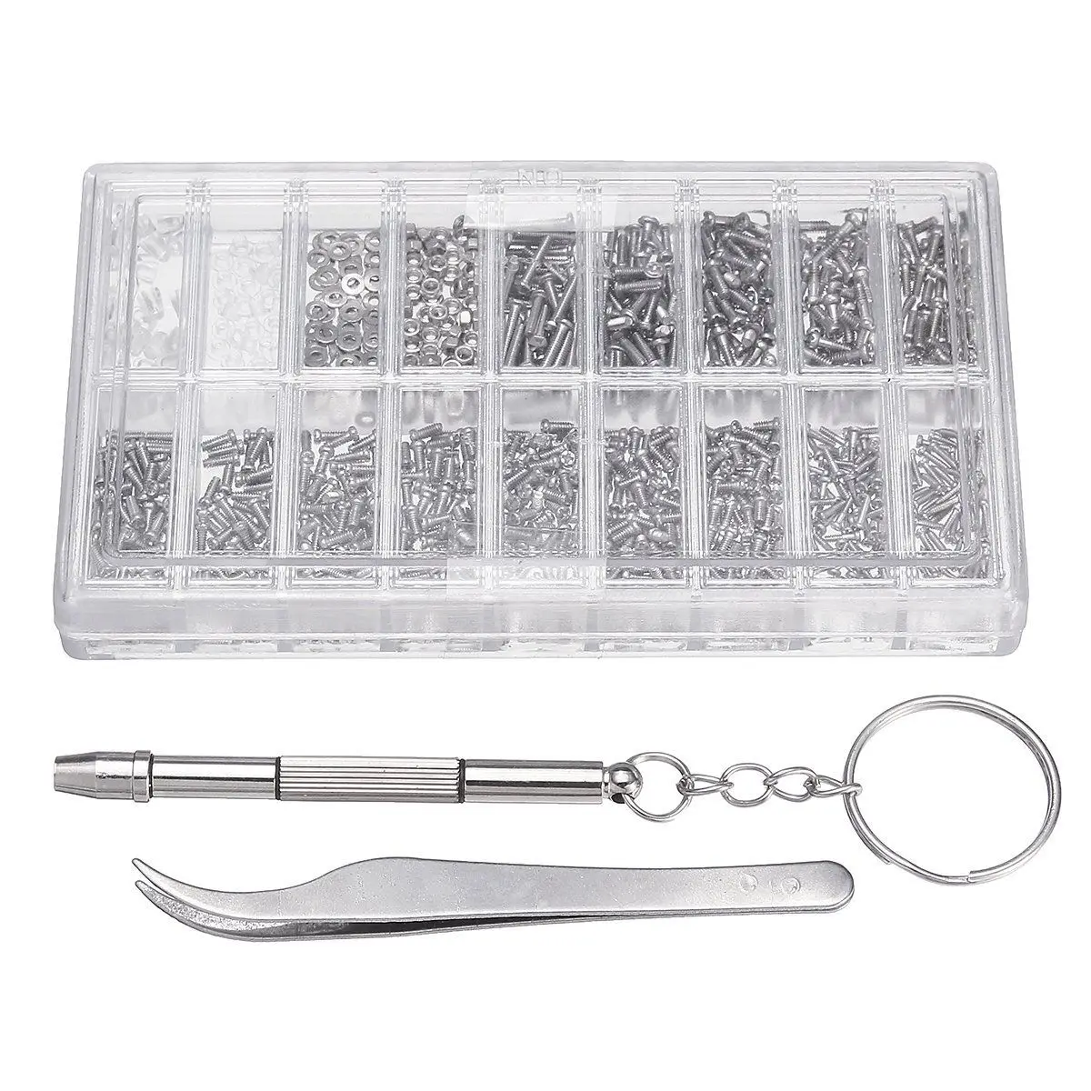 1000 шт. очки винты гайка ассортимент + 1 шт. отвертка + 1 шт. пинцет, очки комплект для ремонта винты для очков оптические Repai