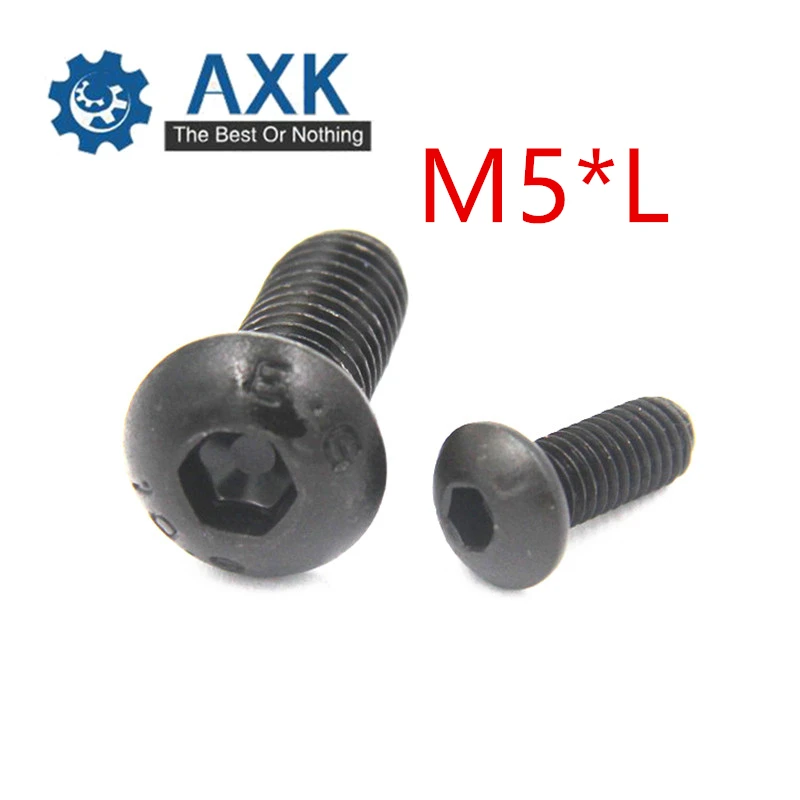100 шт. M5 * L черная сталь 10,9 класс винты с круглой головкой M5 ISO7380 Шестигранная розетка головная крышка винты с парафусом болты
