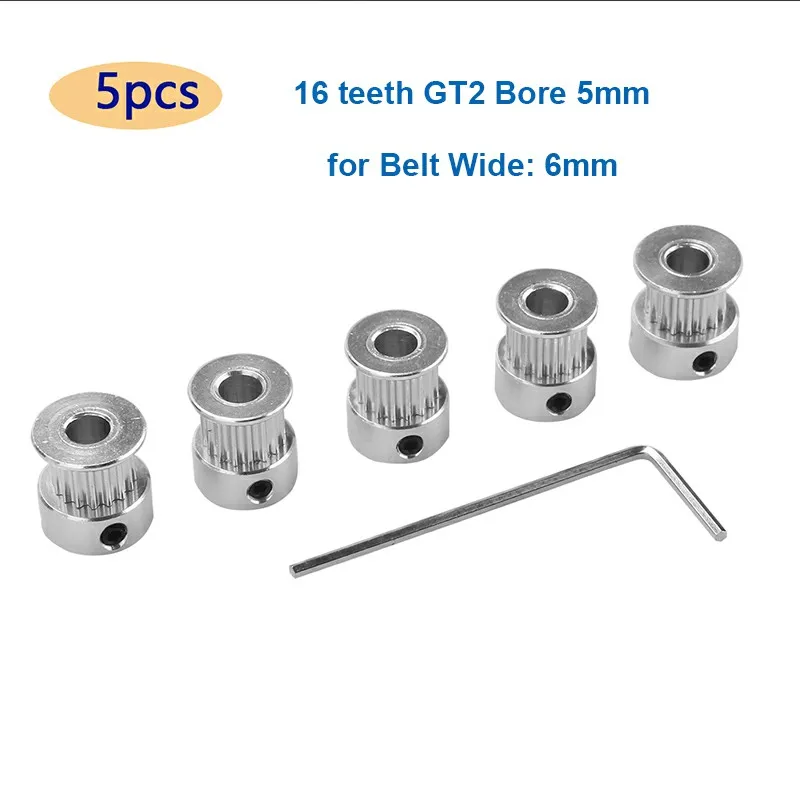 5 шт. 16 зубцов GT2 зубчатый шкив отверстие 5 мм для резины 2GT открытая Ширина ремня ГРМ 6 мм Маленькая люфт 16T + 1 шт. гаечный ключ