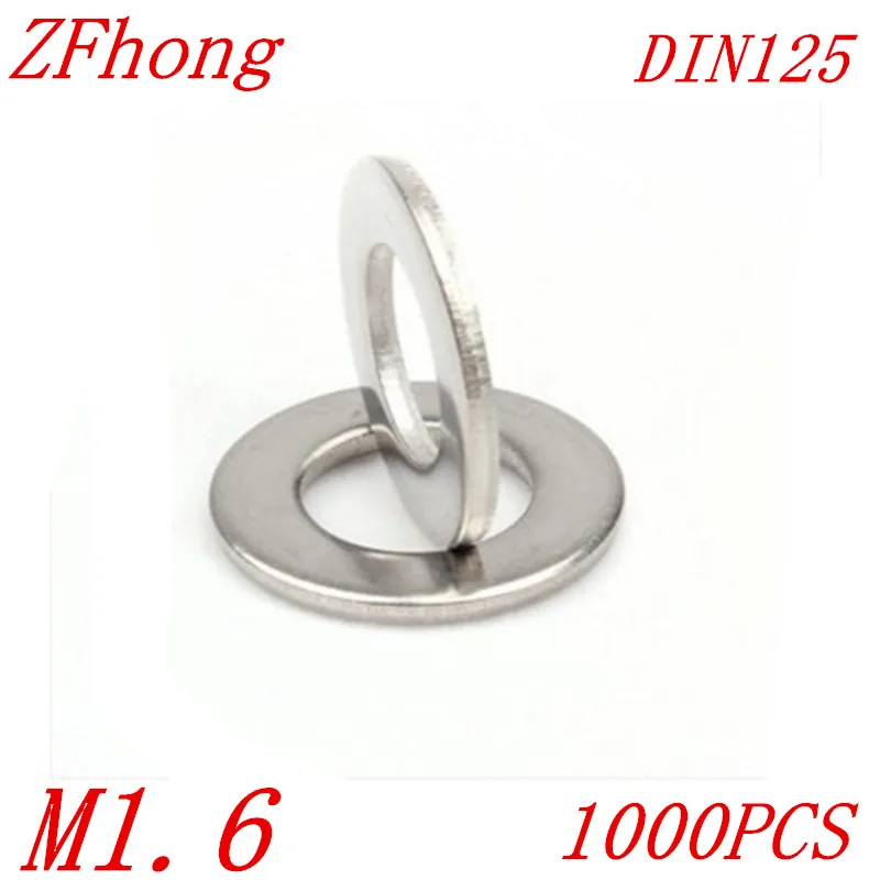 1000 шт. din125 iso7089 M1.6 304 Нержавеющая сталь плоская машина шайба Прокладки