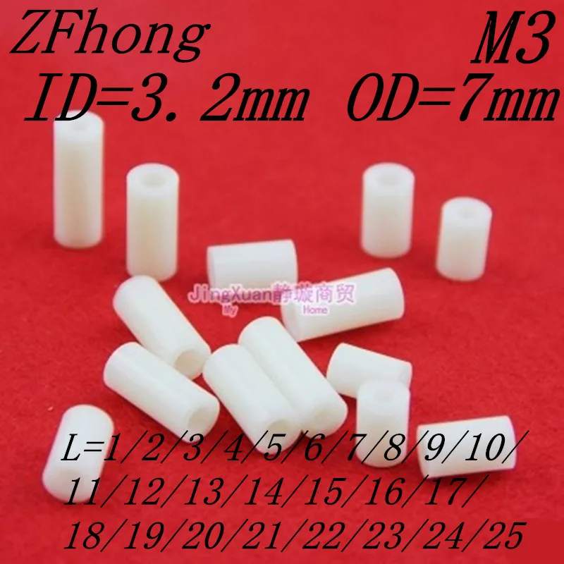 1000 шт./лот M3 3 мм белый нейлон ABS круглый полый нерезьбовой противостояние Шайба ID 3,2 мм печатной платы винт болт