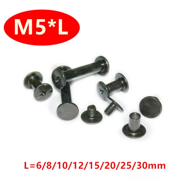 50 шт. Чикаго Винт Секс болт книга зажим винты M4 внутренняя резьба OD5mm черный цинка M5 * 6/8 /10/12/15/20/25/30m'm длина