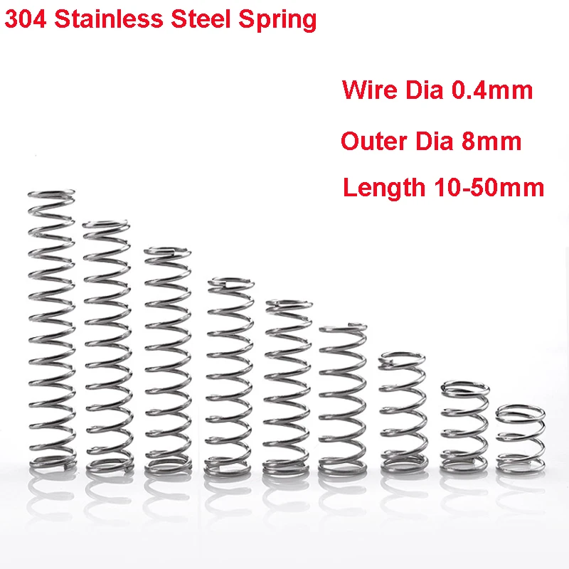 10 шт. Y Тип пружина 304 из нержавеющей стали Пружина диаметр 0,4 мм наружный диаметр 8 мм длина 10-50 мм