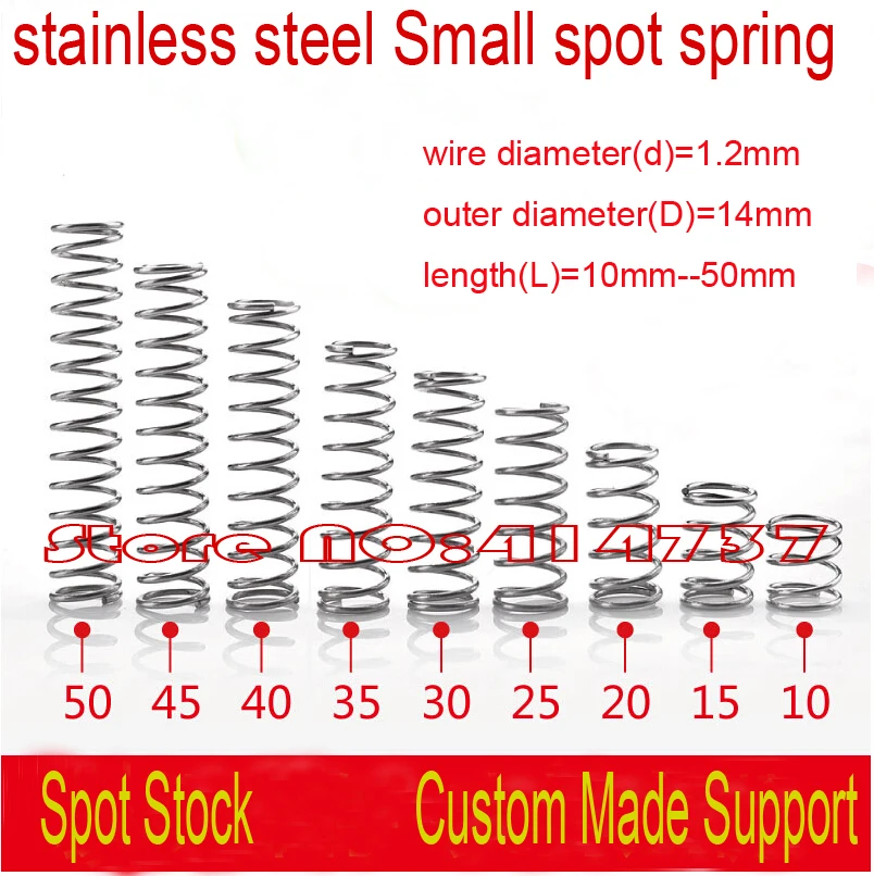 1,2*14*10 мм-50 мм OD = 14 мм 1,2 мм проволока из нержавеющей стали пятно Весна сжатия микро Весна пружина OD = 14 мм