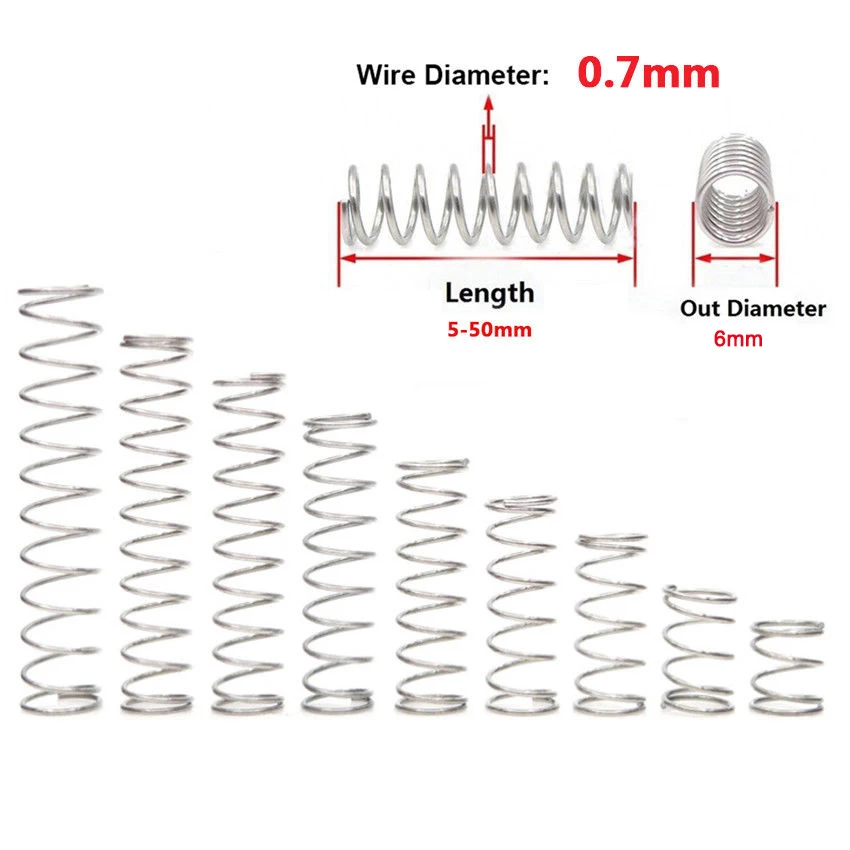 10 шт. Пружина сжатия 304 нержавеющая сталь некоррозионная Натяжная пружина проволока диаметр 0,7 мм наружный диаметр 6 мм Длина 5-50 мм